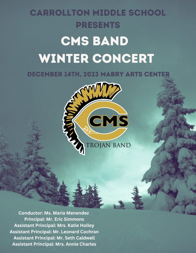 Congratulations to our students who participated in the West Georgia Winds Fall Session concert last night. This ensemble has students from 12 different schools across our region of the state and rehearses on Sundays with Ms. Abigail Russom, Director of bands at Cass Middle School. The students performed wonderfully last night! Thank you to the following students for pushing themselves and being strong leaders in our band program: Viviana Deatherage, Abigail Keesling, Jenly Santos, Kylie Sheldon, Emmett Bush, Sameeah Aremu, Jamiya Buffington, Walkiria Lizano, Reese Roegnik, Wendy Whaley, Logan Rowell, Sierra Singer, Zifera Rivera Manon, William Rivera, Kevon Tucker, Taylor Warren, William Chapman, Lola Crandell, Colin Carr, Lucy McRae, Iker Delcid-Gonzalez, Xander Adams, Layla Skinner, Reed Butler, Cooper Mullins, and Drew Williams.