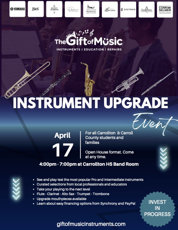 This Friday, our school will have our annual dance for our 7th and 8th graders at the Indoor Facility. If you would like to help run concessions with other band parents and teachers, we would appreciate your help! Please email me at maria.menendez@carrolltoncityschools.net